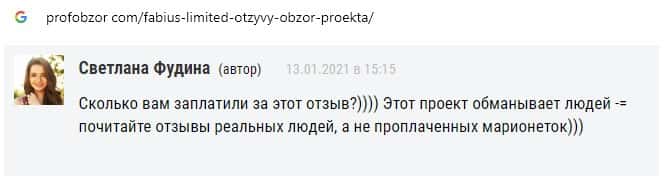 Автор данного комментария пишет, что нельзя вестись на развод со стороны шараги Fabius Limited, которая всячески заманивает на свой сайт наивных и доверчивых людей.