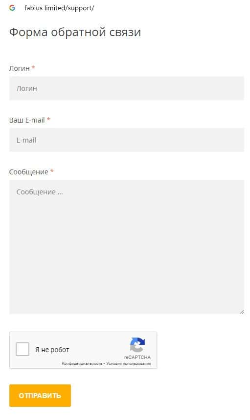 Если мошенники из Фабиус Лимитед и Вас ограбили, то тогда обязательно напишите о данном факте нам. Сообщите свой е-майл в форме связи ниже, с Вами установят связь.