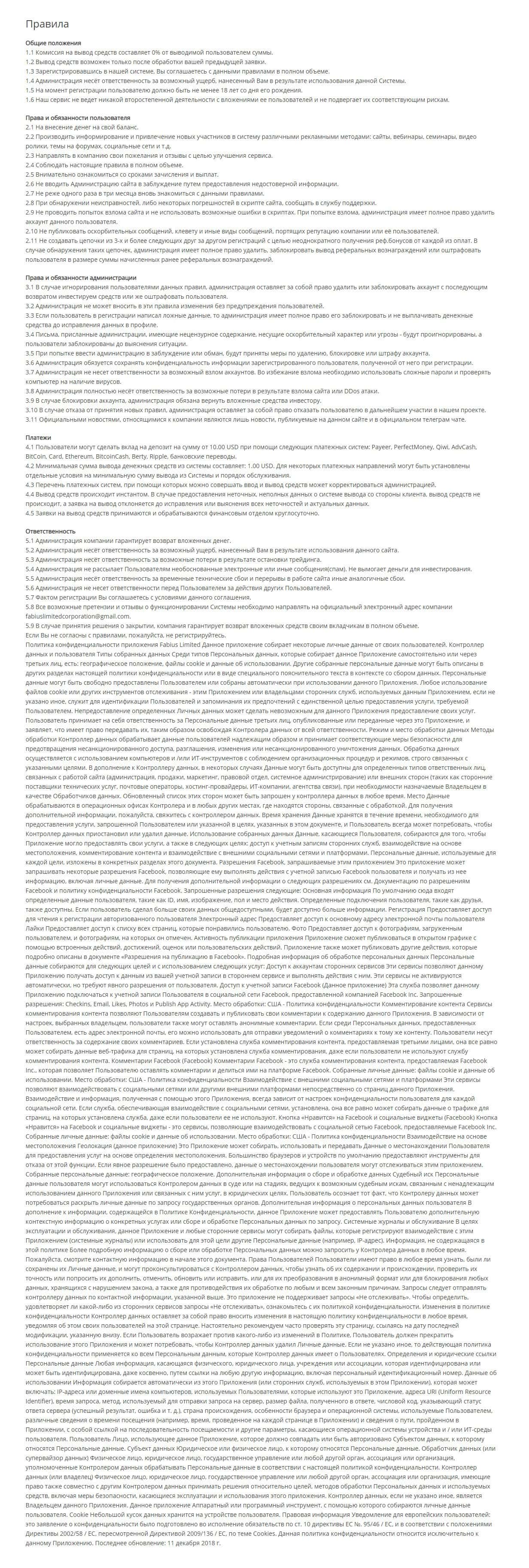 Ниже предоставлена полная версия клиентского соглашения мошеннической организации Фабиус Лимитед, которое подтверждает то, что перед нами очередной скам-проект.