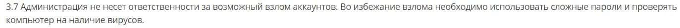 Аферисты Фабиус Лимитед не несут никакой ответственности за взлом аккаунтов пользователей своего сайта, что является признаком интернет-лохотрона.