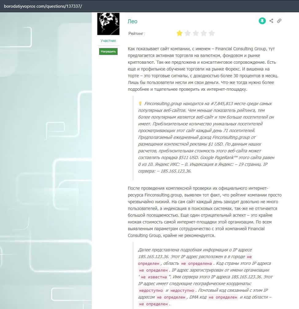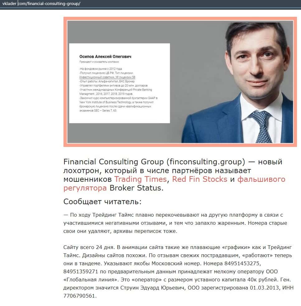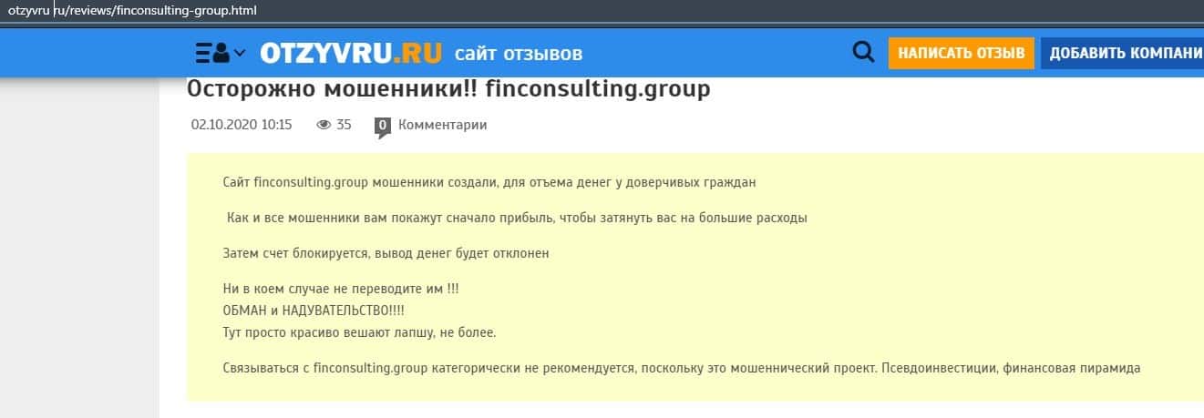 Очередная негативная статья о деятельности мошенников FinConsulting Group. Это банальный разводняк, создатели которого умело играют на доверии потенциальных жертв.