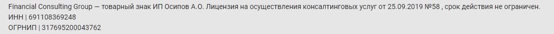 Исходя из официальных данных, контора Файнэншил Консалтинг принадлежит некой компании ИП Осипов А.О., которая зарегистрирована на территории Российской Федерации.