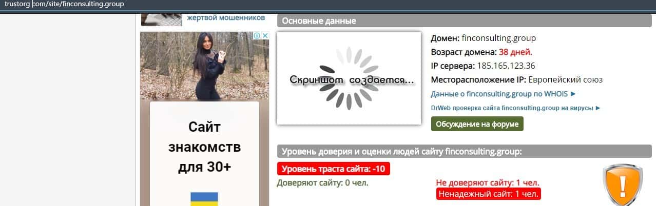 Официальный сайт псевдоконторы Файнэншил Консалтинг, по данным одного ресурса, был создан больше 38 дней, поэтому эта кухня-однодневка в скором времени соскамится.