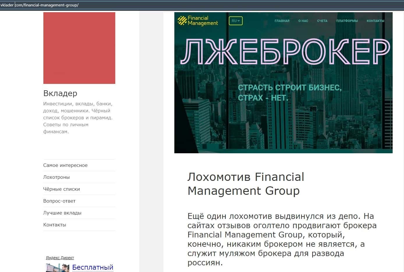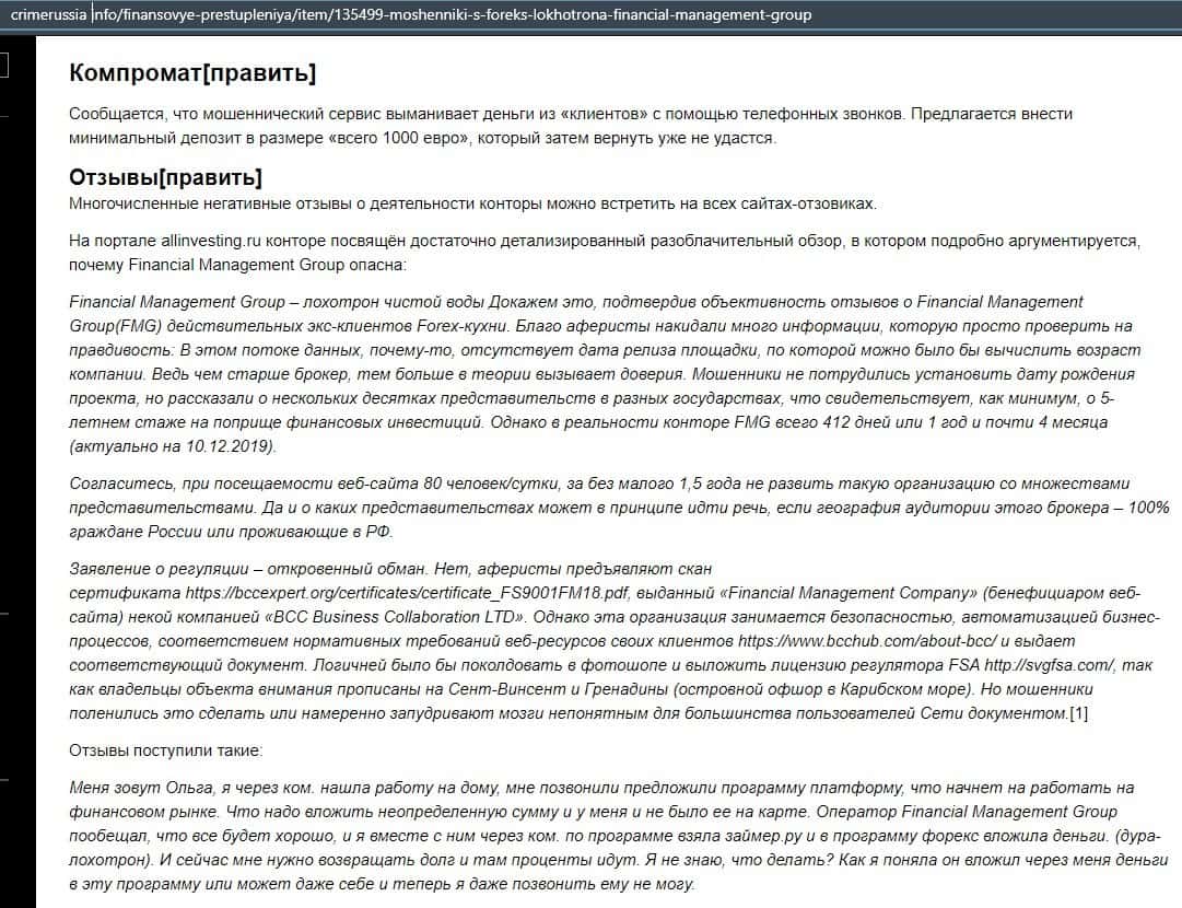- Лохотрон Financial Management уже начал борьбу с данной статьей