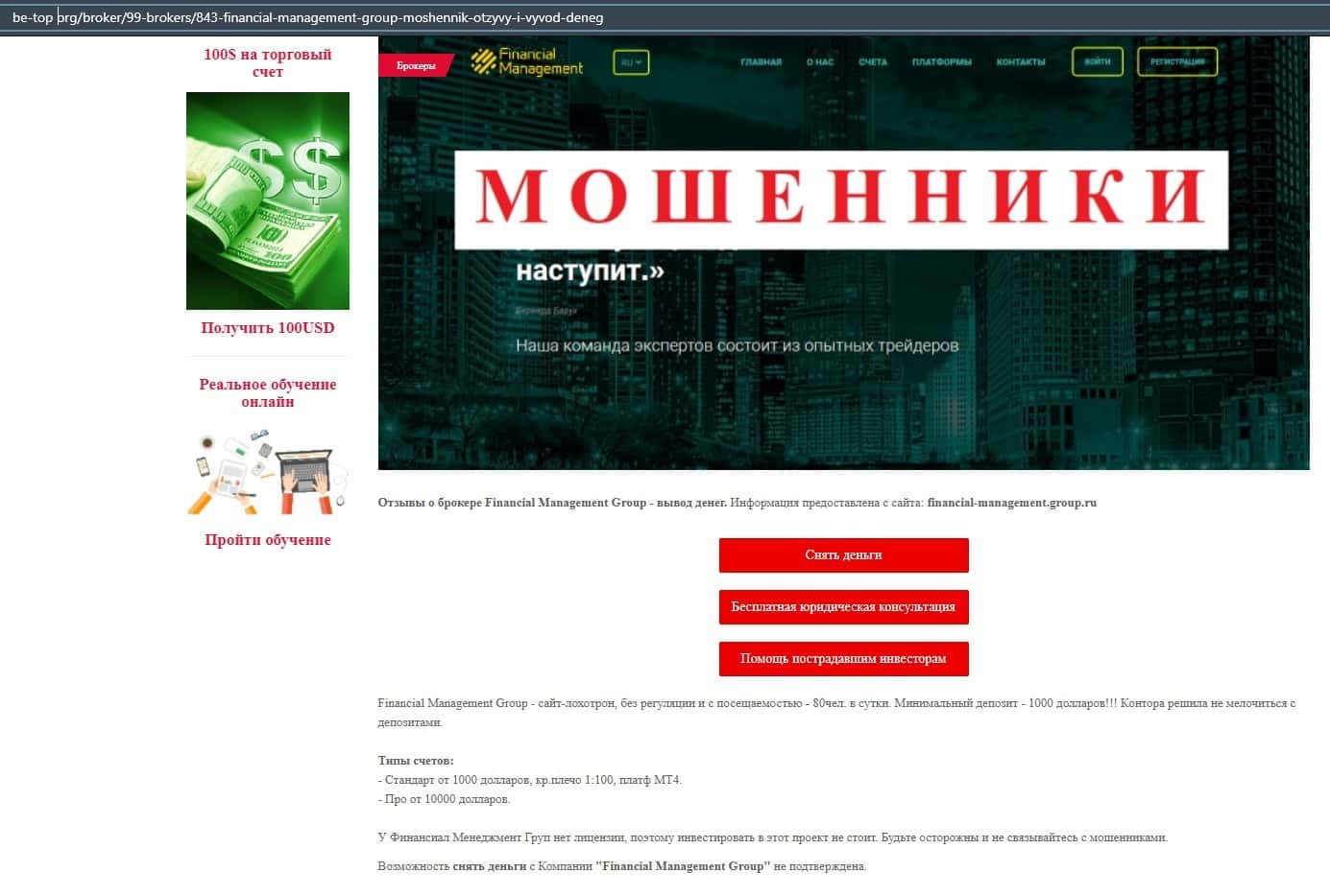 - Информация о шулерском брокере Financial Management