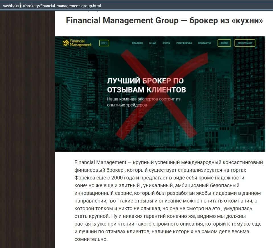 Очередной обзор о кухонном брокере Financial Management был найден на просторах интернета. По мнению автора, они пишут о себе на сайте весьма сомнительную информацию.