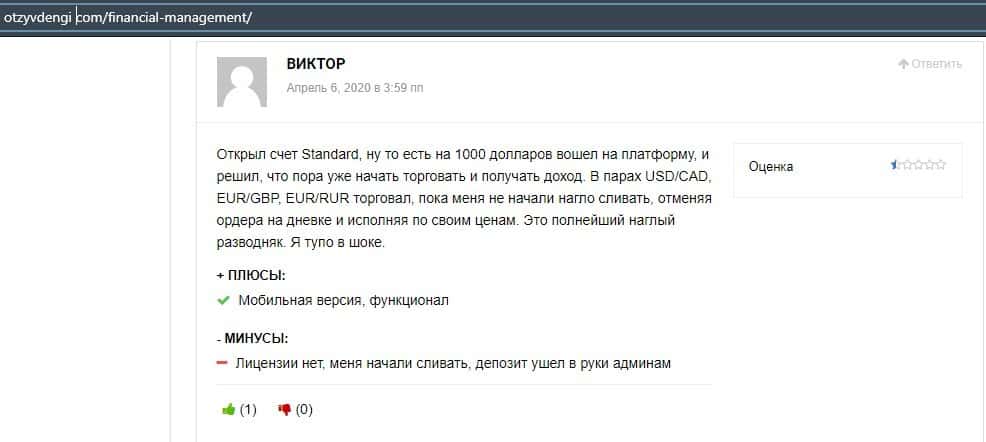 Обзоры и отзывы мошеннического форекс-брокера Financial Management