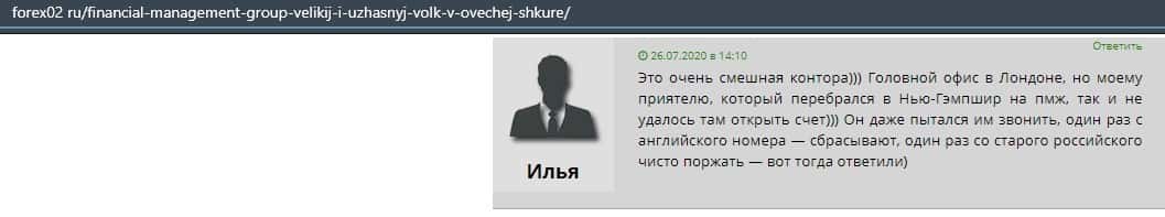 Со счета открытого в конторе Файненшил Менеджмент вывести деньги невозможно. Это может подтвердить автор следующего отзыва, который попался в такую нелепую ситуацию.