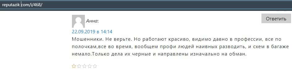 Девушка в своем отзыве рассказала, что она попалась на удочку в лохотрон Файненшил Менеджмент, а теперь не может вывести ни копейки. Тем более, что мошенники ей не отвечают.