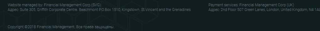 - адрес регистрации - Suite 305, Griffith Corporate Centre Beachmont P.O.Box 1510, Kingstown. St.Vincent and the Grenadines;
