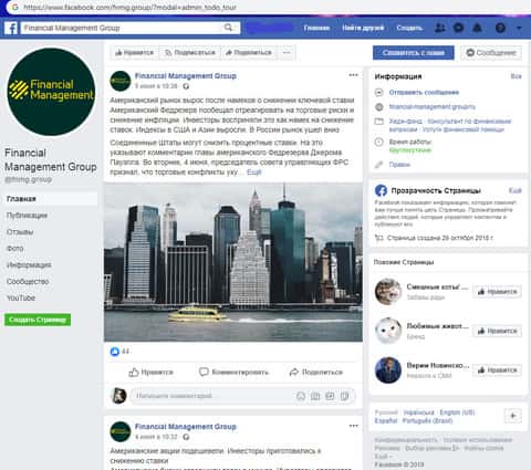 Обзор на страницы лохотрона Financial Management в социальных сетях