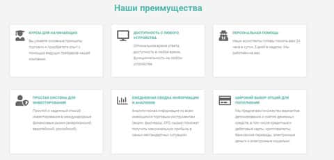 Далее у аферистов Financial Management следует раздел с их преимуществами. По содержимому ничего он заманчивого не несет, да и к тому же подтвердить их чем-то шулера Файненшил Менеджмент определенно не могут. На изображении ниже вы можете увидеть раздел с якобы преимуществами лохотрона.
