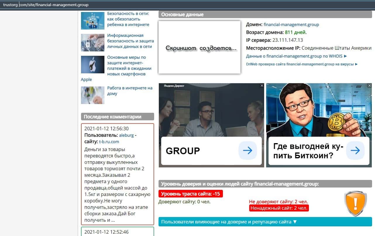 - О возрасте домена портала аферистов Financial Management