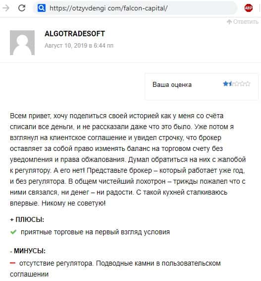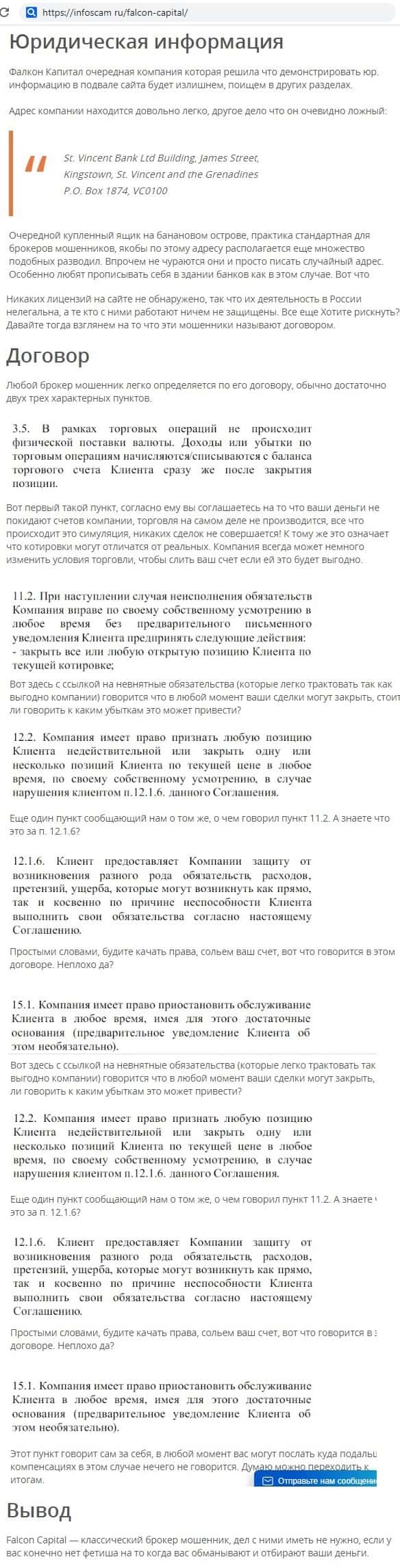 Анализ клиентского соглашения дилинговой компании Falcon-Capital Net в обзоре интернет-ресурса infoscam ru