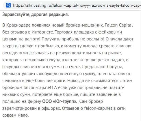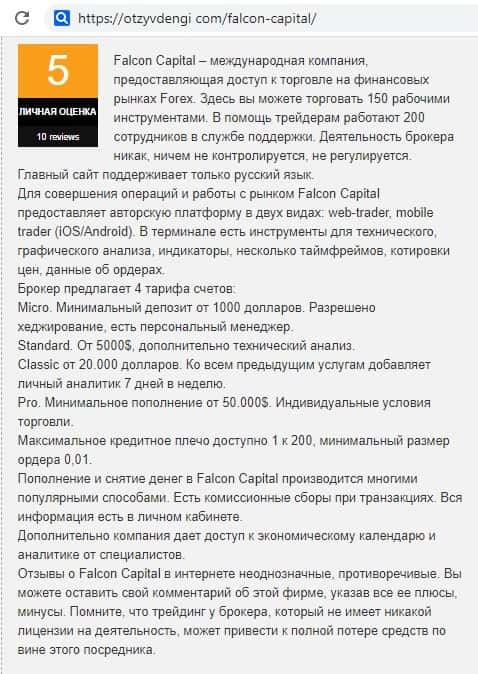 На сайте allinvesting ru удалось найти некоторые данные о пропавшем форекс-брокере FalconCapital