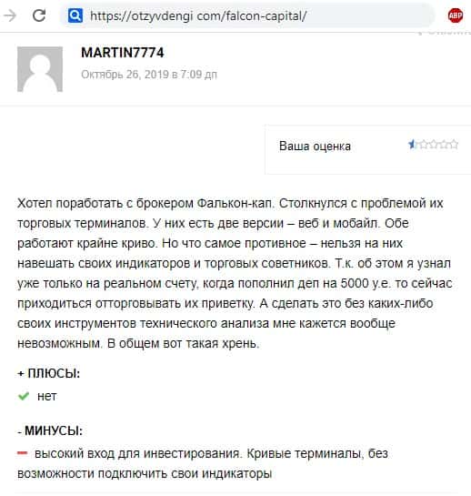 Воодушевленный форекс-трейдер горел желанием поторговать совместно с брокерской компанией Фалькон Капитал, но столкнулся с непонятными и непреодолимыми трудностями: плохая работа торговых терминалов, высокие ставки денежных вложений для инвестирования, невозможность использования собственных торговых инструментов.