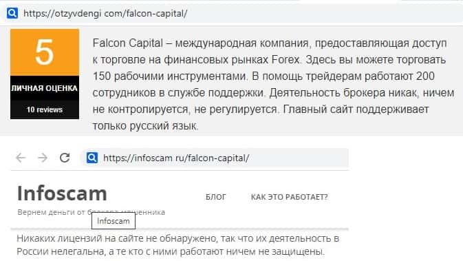 Интернет-источники, использованные при подготовке материала о мошеннической компании FalconCapital