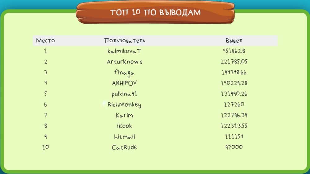 Чтобы побудить новичков вкладывать больше денег, авантюристы Фан Фишермен вывесили топ по выводам. 400 тысяч рублей, 200 тысяч рублей - эти цифры заставляют новичков вкладывать (а что, тоже такую прибыль хочется). Вот только экономика игры разработана так, что вывести вы можете только меньше, чем вложили.
