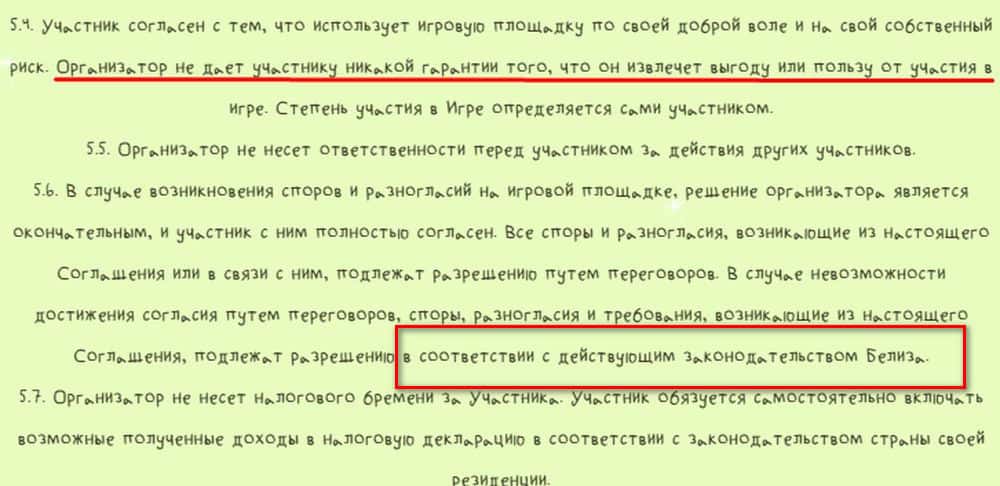 И тут начинается самое интересное. Жулики Fun-Fishermen Org отказываются от всех претензий, все споры решают в одностороннем порядке (это значит, их слово последнее, и ничего объяснять они не должны). Но если претензии все-таки появятся, решать их придется по законодательству Белиза, который является международной оффшорной зоной.