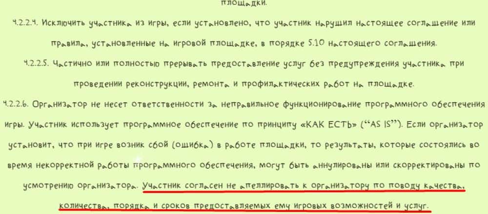 Сами кидалы Фан Фишермен в клиентском соглашении честно признаются, что их онлайн-лохотрон не создан как средство пассивного заработка. И все, кто поставил галочку, отказываются от любых претензий к организатором. Жаль, что само соглашение доступно только при регистрации, и его никто не читает.