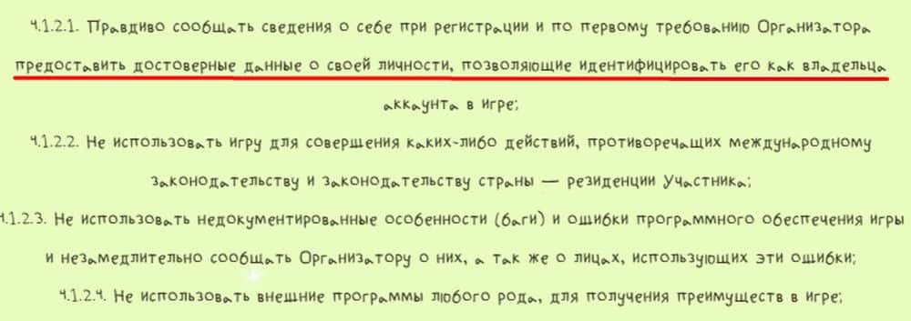 Казалось бы, о каких данных идет речь? Ведь в игре всего-то и нужно, что ник, а все выплаты идут через анонимные сервера-агрегаторы. Но у пройдох Фан Фишермен не так все просто. Они настаивают, что каждый пользователь должен подтвердить свою личность при первом требовании - а это уже стандартный набор документов, включая паспорт.
