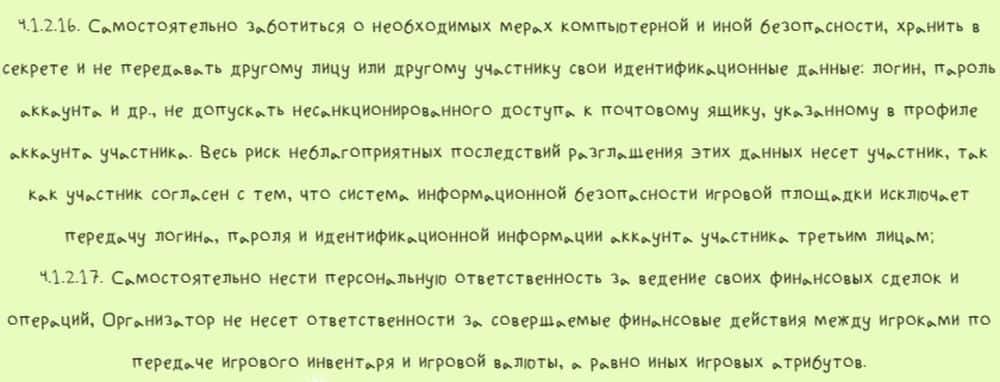 При этом обеспечение безопасности - дело рук самих инвесторов. Шарашка Фан Фишермен не гарантирует безопасность собственного сайта, сохранность паролей и личных данных. Обо всем этом должны позаботится сами игроки. Администрация Фан Фишермен даже за сбои в работе своего скам-приложения ответственность нести не собирается.
