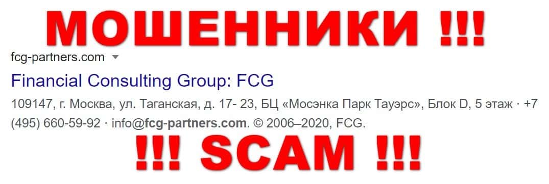 Фанэншил Консалтинг Групп - очередная мошенническая контора, которая предлагает липовые консалтинговые услуги, завлекая новую клиентуру, дабы стащить с них как можно больше денег. Юридических и регулирующих данных о них нет, только известно, что лохотрон расположен на территории Российской Федерации. Негативные отзывы говорят сами за себя, поэтому мы настоятельно не рекомендуем связываться с жульем FCG Partners.