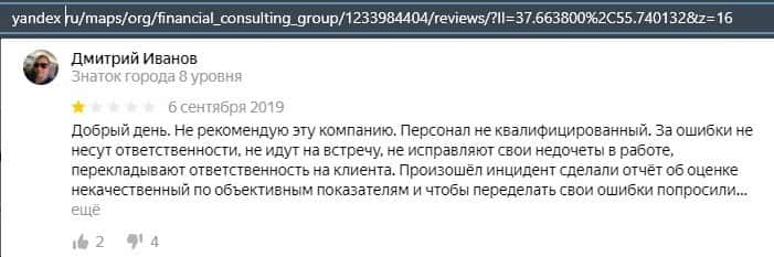 Клиенты не рекомендуют пользоваться услугами FCG Partners