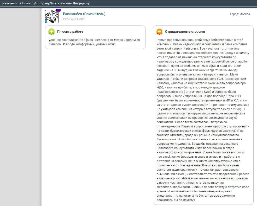 Очередной сотрудник попросту аж убежал с лохотронской организации Фанэншил Консалтинг Групп, потому что он не смог работать в этом дурдоме, где никто ничего не знает.