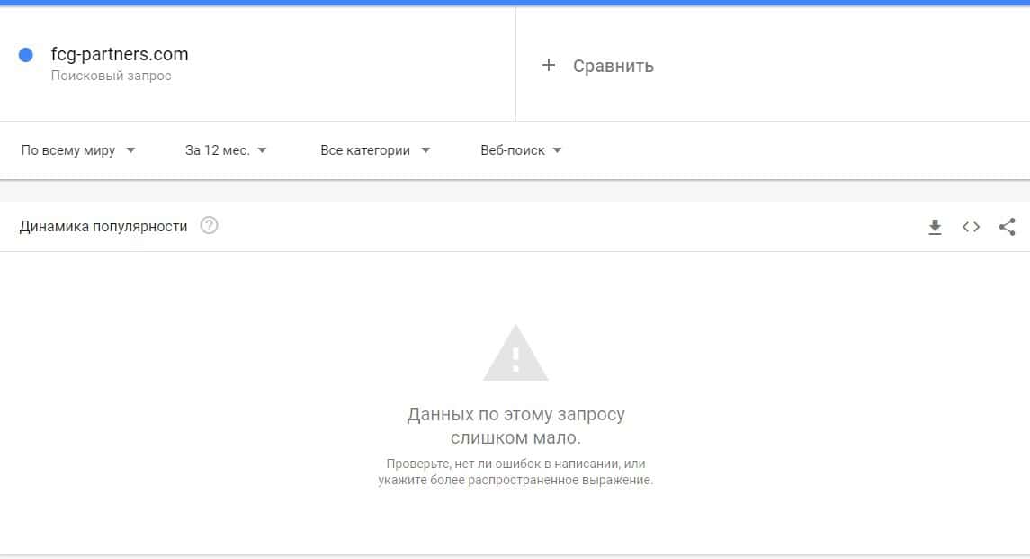Такая же судьба и у бренда "fcg-partners.com", который обозначает официальный сайт лохотрона. В Гугл ни одного раза в этом месяце не было найдено этот ресурс.