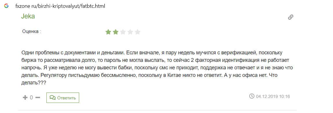 Отзыв клиента криптобиржи Фат БТЦ на сайте fxzone ru: средства не выводят, поддержка не отвечает