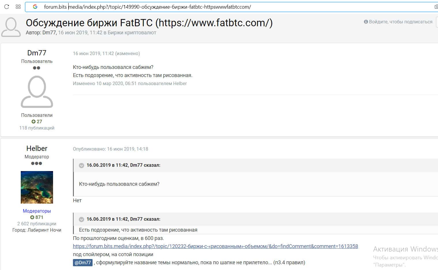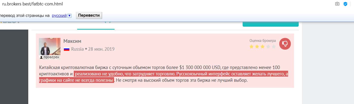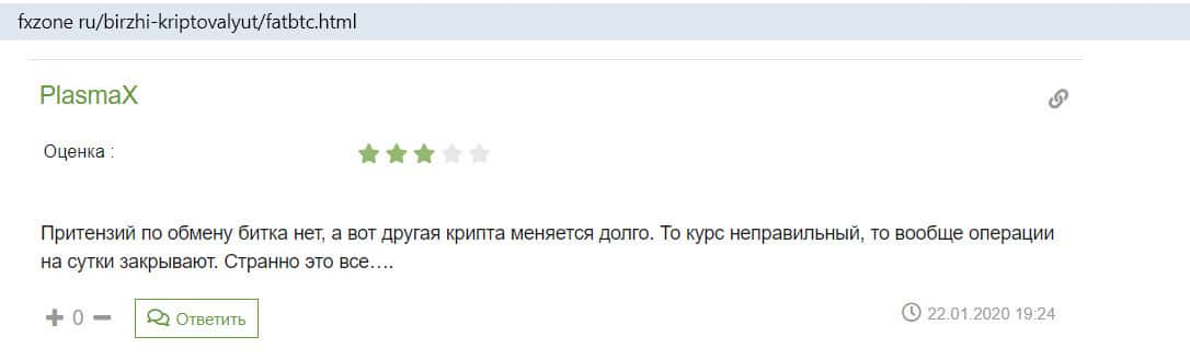 - Негативный комментарий о криптобирже Фат БТЦ: на платформе заключаются фейковые сделки