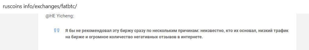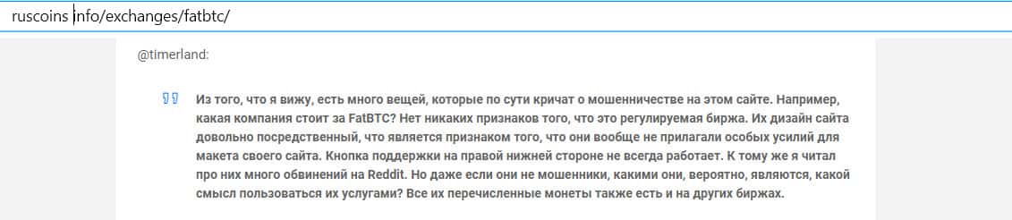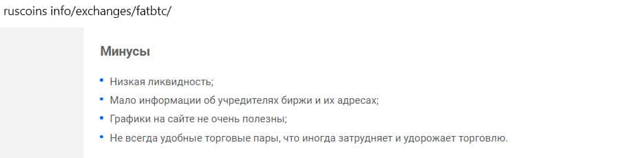 Основные недостатки криптобиржи Фат БТЦ по мнению сайта ruscoins info