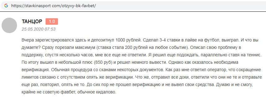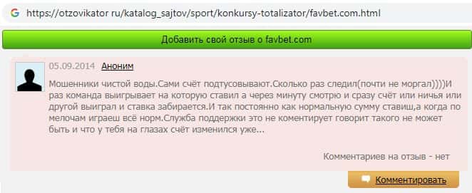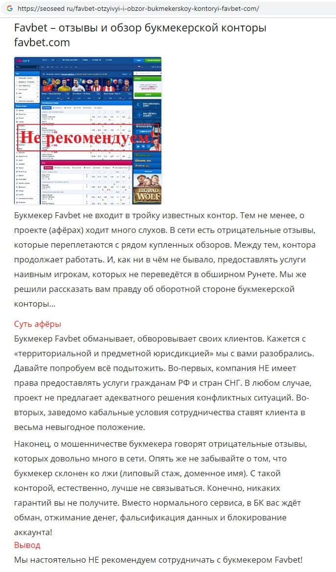 Fav Bet - обзоры аферистов на других интернет-сервисах