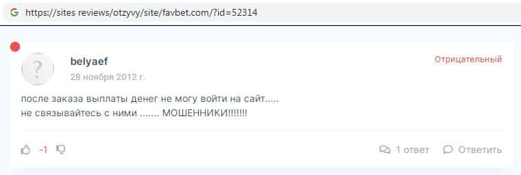 - Отзывы о скам-проекте Фав Бет, ныне присутствующие в сети-интернет