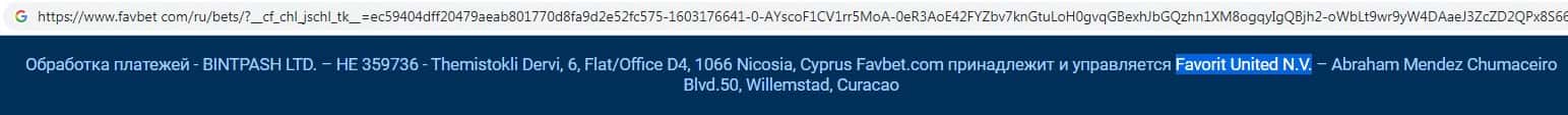Юридическое лицо Favorit United N.V. владеет мошенническим онлайн-сервисом favbet com, компании Фав Бет, у которой оффшорная регуляция Кюрасао.