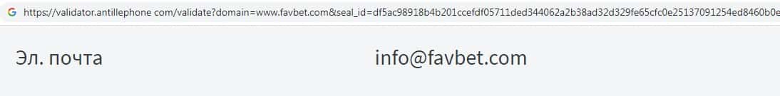 Жулики Фав Бет на своем официальном интернет-ресурсе указывают адрес электронной почты, а именно: