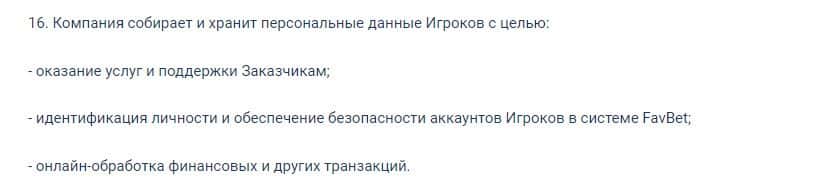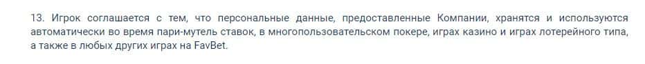 Букмекерская контора Fav Bet хранит и использует персональные данные пользователя во время ставок на спорт.