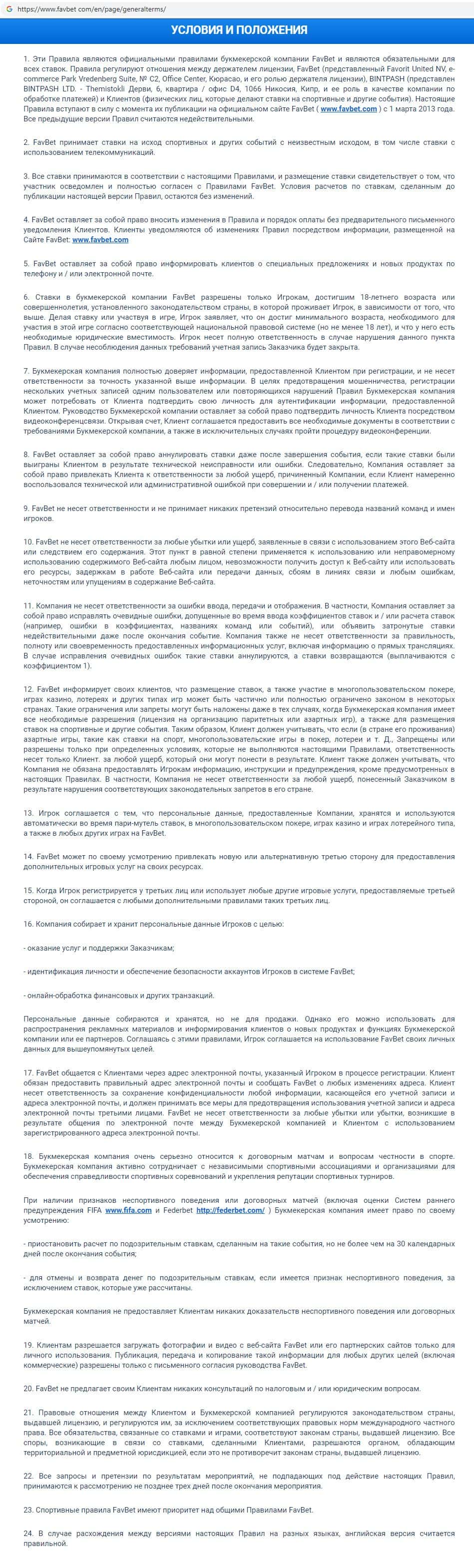 - Клиентское соглашение мошеннической конторы Fav Bet