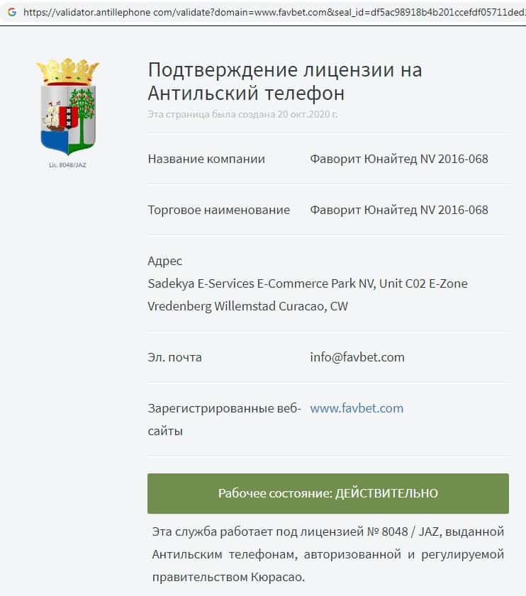 Местом регистрации Фав Бет является оффшорное государство Кюрасао, где зарегистрировано огромное количество аналогичных онлайн-лохотронов.