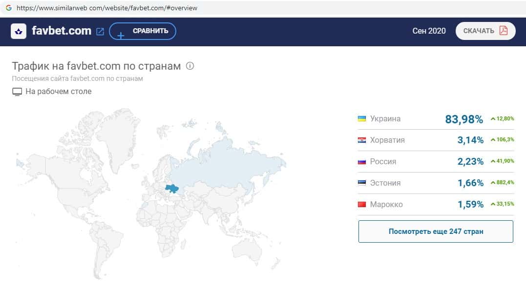 При проверке посещаемости интернет-ресурса букмекерской конторы Фав Бет на similarweb com оказалось, что среди трафика есть пользователи из России