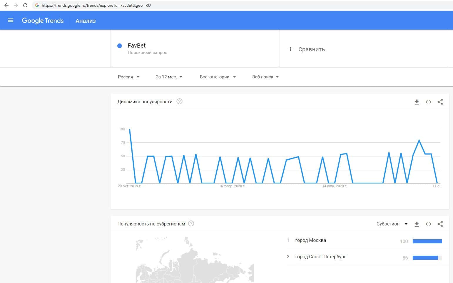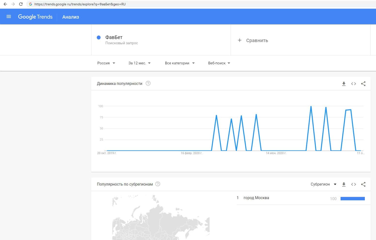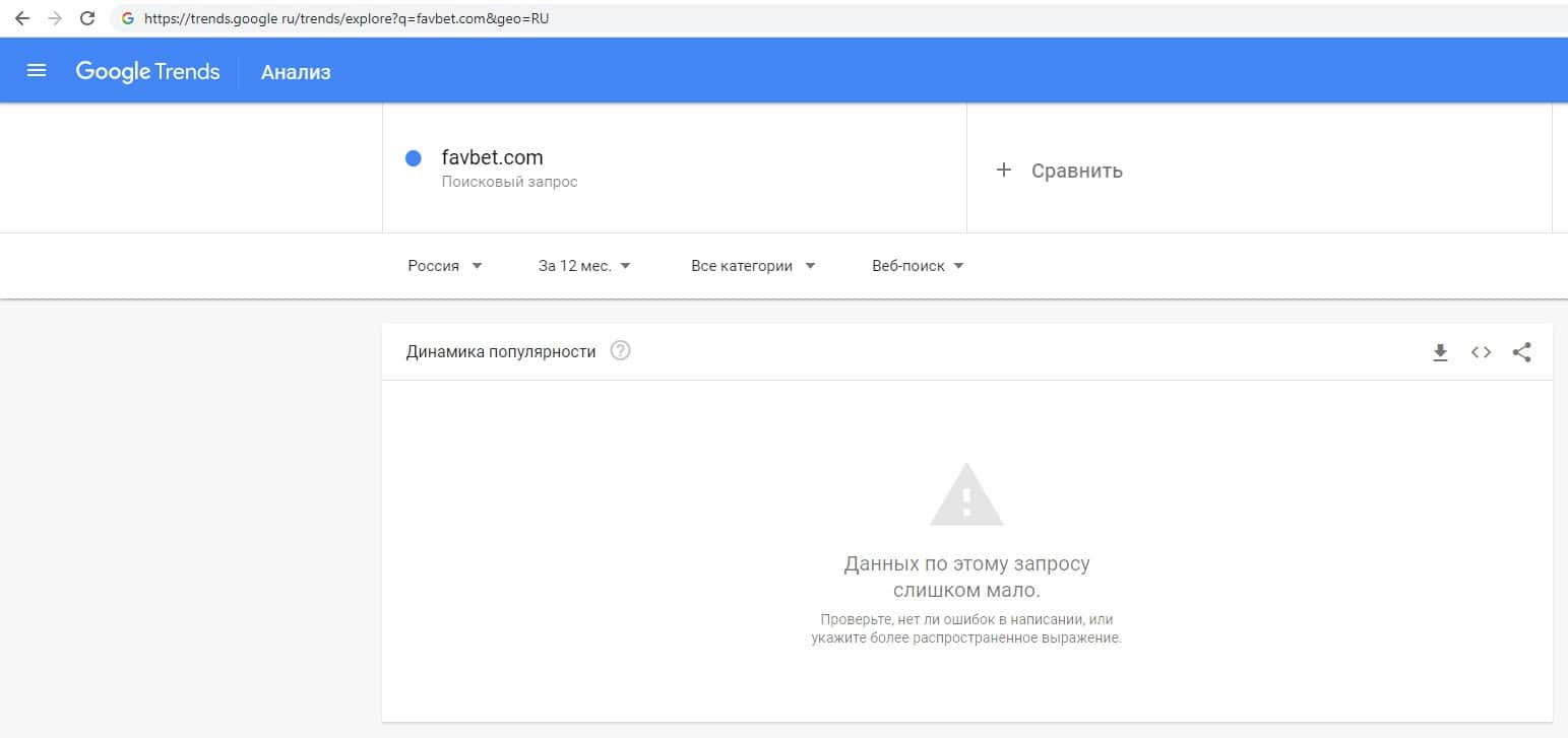 О количестве запросов по бренду названия компании на русском языке с пробелом "Фав Бет" на Гугл Трендс нет никакой информации.