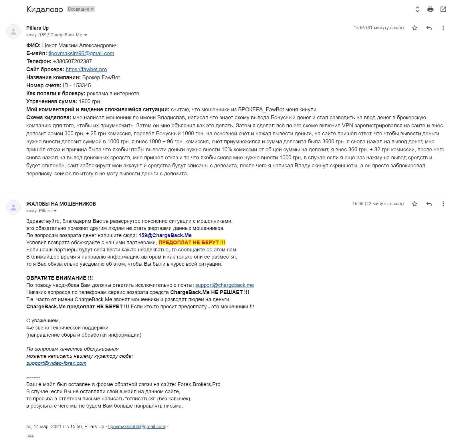В данном разделе предлагаем ознакомиться с первоочередной и подробной жалобой об обманщиках ФавБет Про, которые кинули клиента на 700 гривен.
