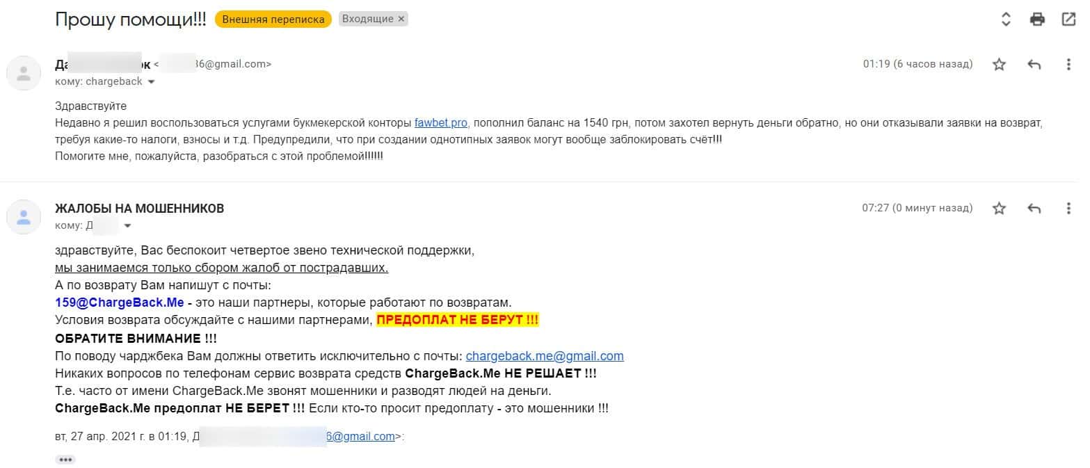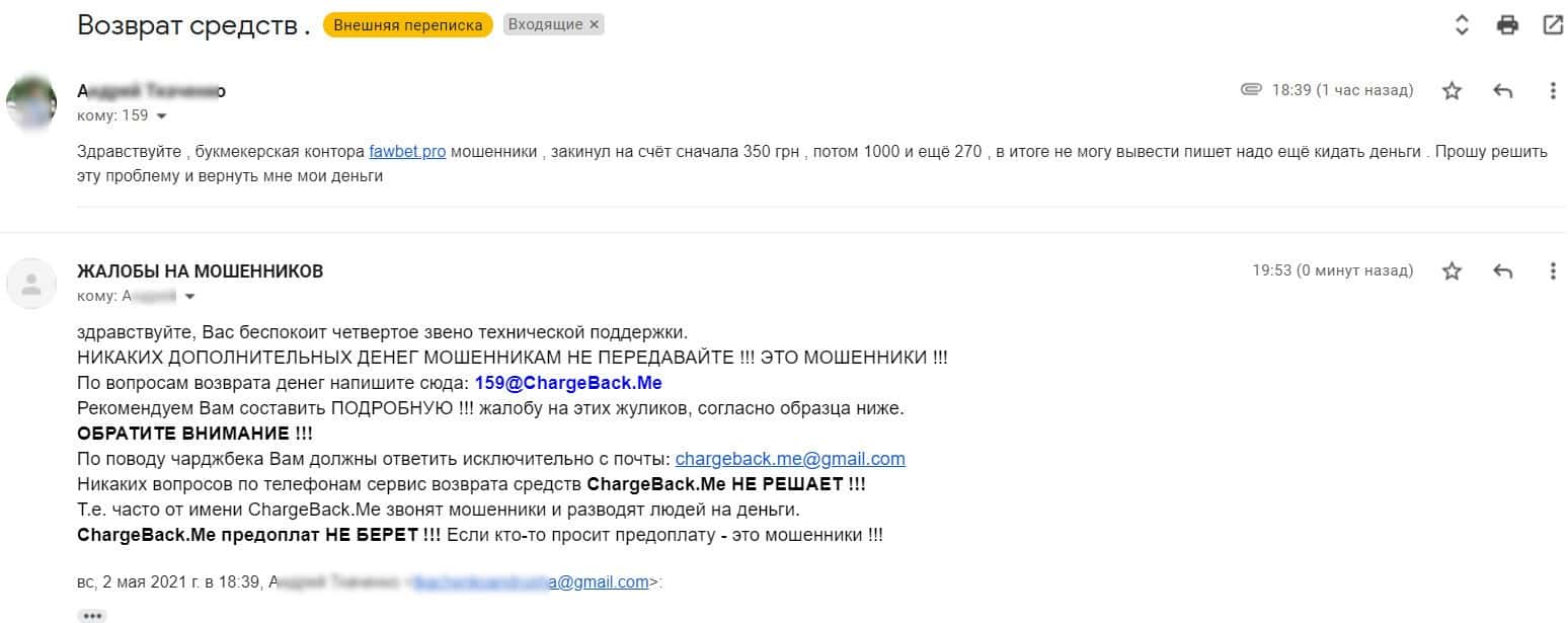 - Контактная информация аферистов FawBet Pro