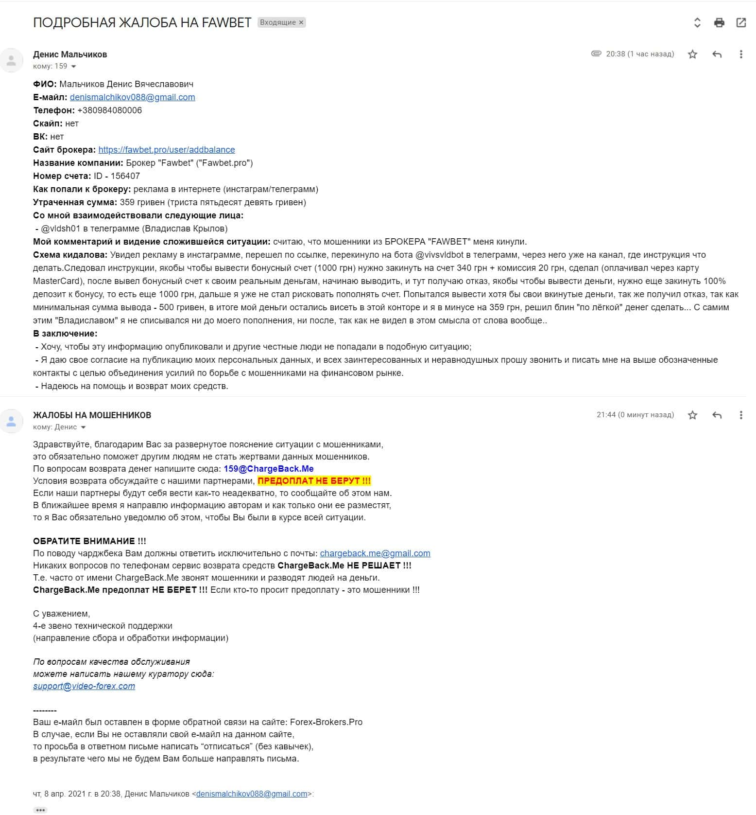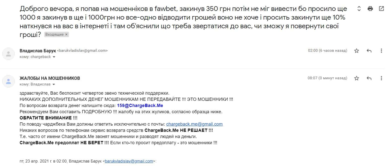 В данном разделе предлагаем ознакомиться с подробной и первоочередной жалобой об обманщиках FawBet, которые кинули клиента на 359 гривен.