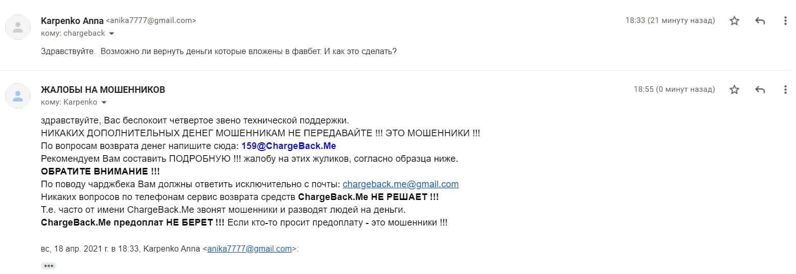 По поводу возможностей получить вложенные деньги от МОШЕННИКОВ ФавБет - напишите сообщение сюда: [email protected]