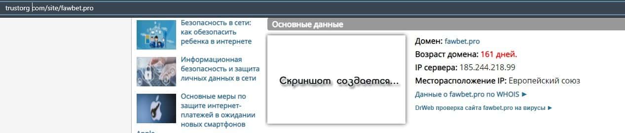 О возрасте домена сайта аферистов ФавБет