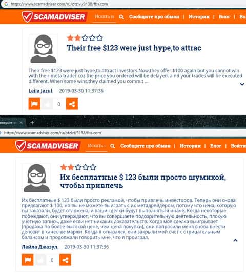- Отзыв о лохотроне ФБС с портала scamadviser com
