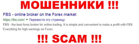 ФБС - очередные мошенники сети интернет, которые занимаются наглым разводом наивных пользователей сети под предлогом торговли форекс, в ходе которой аферисты FBS нагло сливают наивным пользователям счет под предлогом торговли форекс и CFD, еще и деньги не выводят. В связи с этим определенно не рекомендуем сотрудничать с мошенниками ФБС !!!
