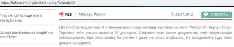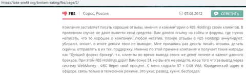- Еще один отзыв о лохотроне FBS с портала тейк-профит орг